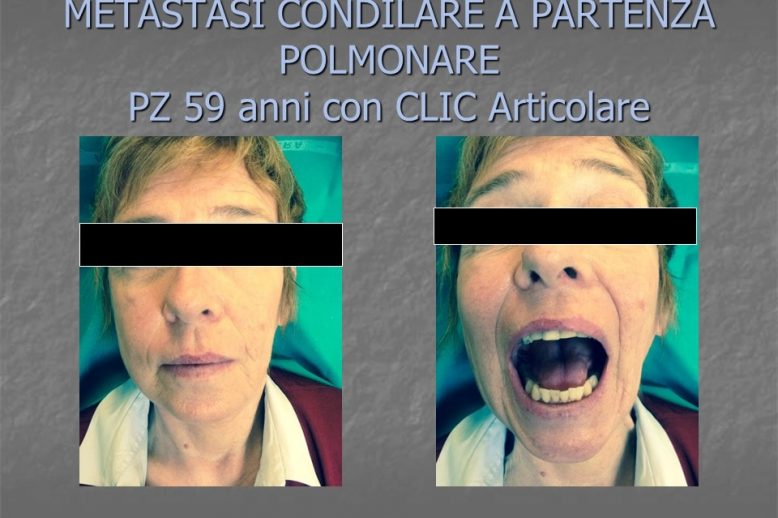 Artrite reumatoide causante osteolisi fossa glenoidea e parete temporale: esecuzione TAC del Massiccio facciale si evidenzia un minus in corrispondenza della fossa glenoidea sinistra interessante il basicranio